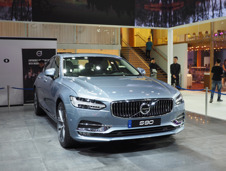 豪華安全首選座駕 沃爾沃S90實車美圖鑒賞沃爾沃S90出自最新的SPA平臺,同樣設計風格也采用了最新的家族式的設計,S90正面看是霸氣的直瀑式金屬中網并鑲嵌著沃爾沃LOGO,不得不說的是大燈造型很是犀利。