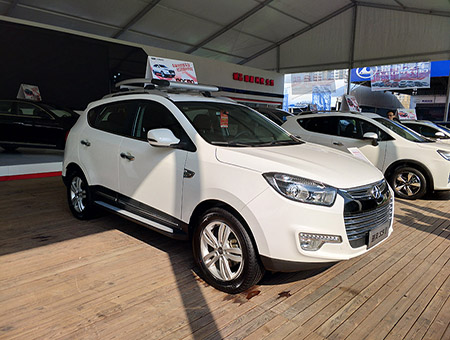 實拍江淮瑞風(fēng)S5, 江淮的第一款城市SUV全新的大嘴式進氣格柵看起來更加夸張,并在之上配備有鍍鉻裝飾條。新車的前大燈組與格柵相連,前保險杠兩側(cè)的霧燈組也有所變化,并配備有LED日間行車燈。 -
