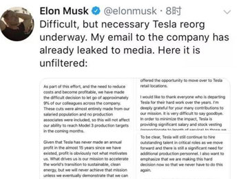 “用愛造車”的特斯拉宣布首次大規(guī)模裁員