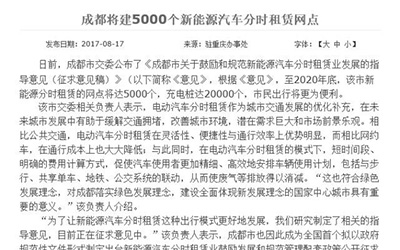 成都將擬建5000個(gè)租賃點(diǎn) 20000個(gè)充電樁